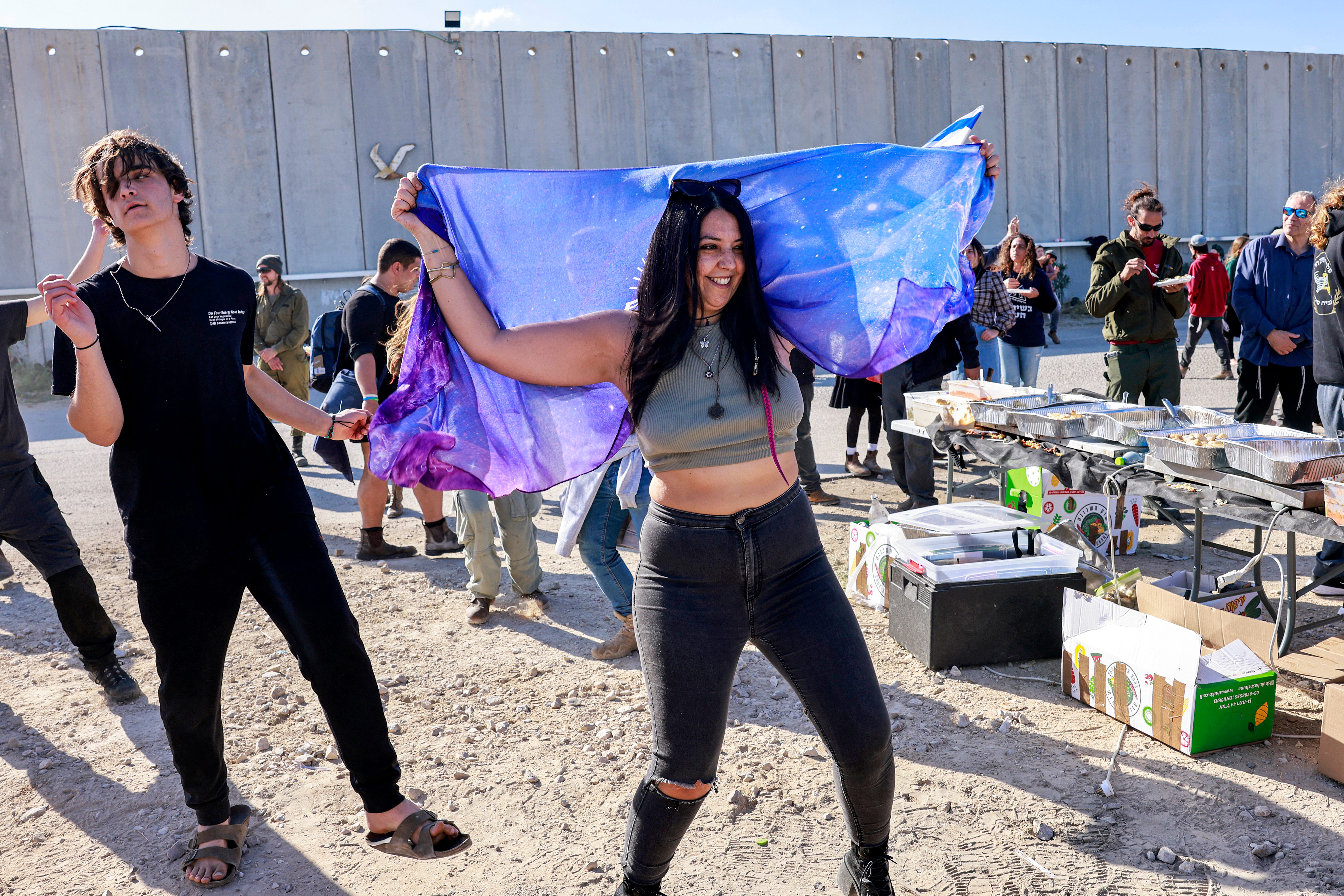 A photograph of young Jewish “Israeli’s” camping out at the border crossing in Gaza to block aid from reaching starving Palestinian civilians including babies and children